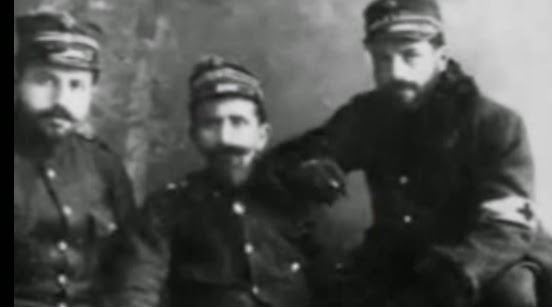 O ΓΕΩΡΓΙΟΣ Ν. ΠΑΠΑΝΙΚΟΛΑΟΥ ως Έφεδρος Ανθυπίατρος (στον ελληνικό στρατό) κατά τη διάρκεια των Βαλκανικών πολέμων. Τελευταίος στα Δεξιά.