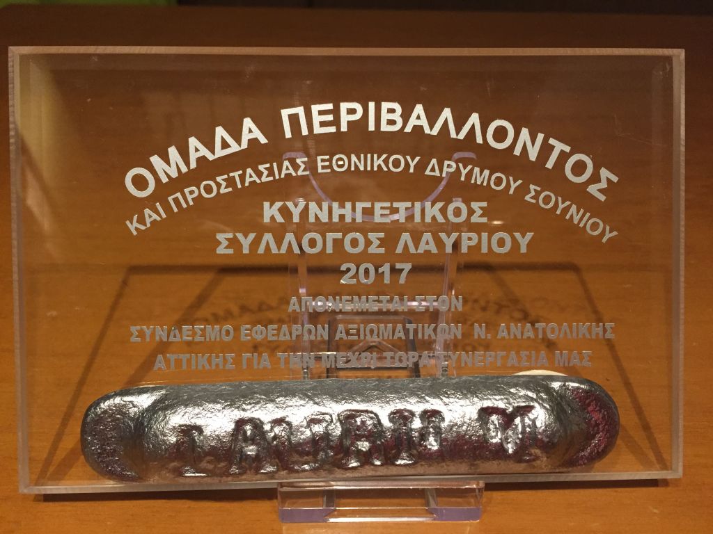 Ο Σύνδεσμος Εφέδρων Αξιωματικών Ανατολικής Αττικής ανταποκρινόμενος άμεσα στο αίτημα της Ομάδας Περιβάλλοντος και Προστασίας Εθνικού Δρυμού Σουνίου του Κυνηγετικού Συλλόγου Λαυρίου, και με πρωτοβουλία του Ταμία μας και αντιπροσώπου μας στο Λαύριο κ.Αθ. Καρκάνη, αποφάσισε να εξοπλίσει τους εθελοντές – μέλη της Ομάδας με μάσκες πυρασφάλειας, προκειμένου να επιτελούν με τον καλύτερο τρόπο και κυρίως με  ασφάλεια τα καθήκοντά τους. Το Σάββατο 27-1-2018 σε μια όμορφη εκδήλωση, παρουσία του Δημάρχου Λαυρεωτικής και Εφέδρου Αξιωματικού κ. Δημητρίου Λουκά, ο Πρόεδρος του Κυνηγετικού Συλλόγου Λαυρίου κ.Θωμάς Κλιάφας απένειμε τιμητική πλακέτα στον Πρόεδρο του Συνδέσμου μας κ.Θ.Μπριάνη για την σημαντική αυτή ενίσχυση των μελών του. Την πλακέτα παρέδωσε ο ίδιος ο Δήμαρχος Λαυρεωτικής. Μαζί με τον ΣΕΑΝ Αν.Αττικής τιμητική πλακέτα έλαβε και το Πυροσβεστικό Σώμα μέσω του κ. Διοικητή του, καθώς επίσης απονεμήθηκαν τιμητικές διακρίσεις και σε όλη την ομάδα πυρασφάλειας. Από τον ΣΕΑΝ Αν Αττικής παρέστησαν εκτός του Προέδρου, ο ΓΓ κ. Γ. Μιχαήλ, το μέλος του ΔΣ Λ. Ρίζος και το μέλος μας και αντιπρόσωπός μας στον Δήμο Κρωπίας Μ. Δήμας. Σκοπός του ΣΕΑΝ Αν.Αττικής είναι η προώθηση και ενίσχυση του εθελοντισμού και ως εκ τούτου θα βρίσκεται πάντα δίπλα σε τέτοιες πρωτοβουλίες.