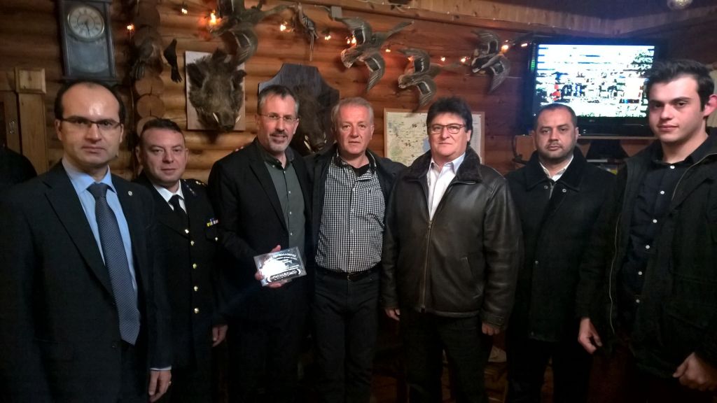 Τα μέλη των Εφέδρων Αξιωματικών Θ. Μπριάνης, Γ.Μιχαήλ, Λ.Ρίζος και Μ.Δήμας με τον Πρόεδρο του Κυνηγετικού Συλλόγου Λαυρίου, τον Διοικητή του Πυροσβεστικού Σώματος και τον Διοικητή του Αστ.Τμήματος Λαυρίου