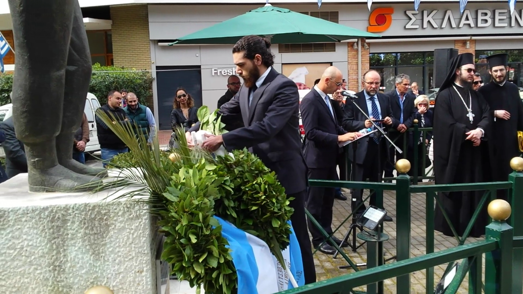 Κατάθεση στεφάνου από τον αντιπρόσωπό μας στον Δήμο Φιλοθέης Ψυχικού Δρ.Θεόδωρο Μπάζα (φωτογραφία Γάκη)