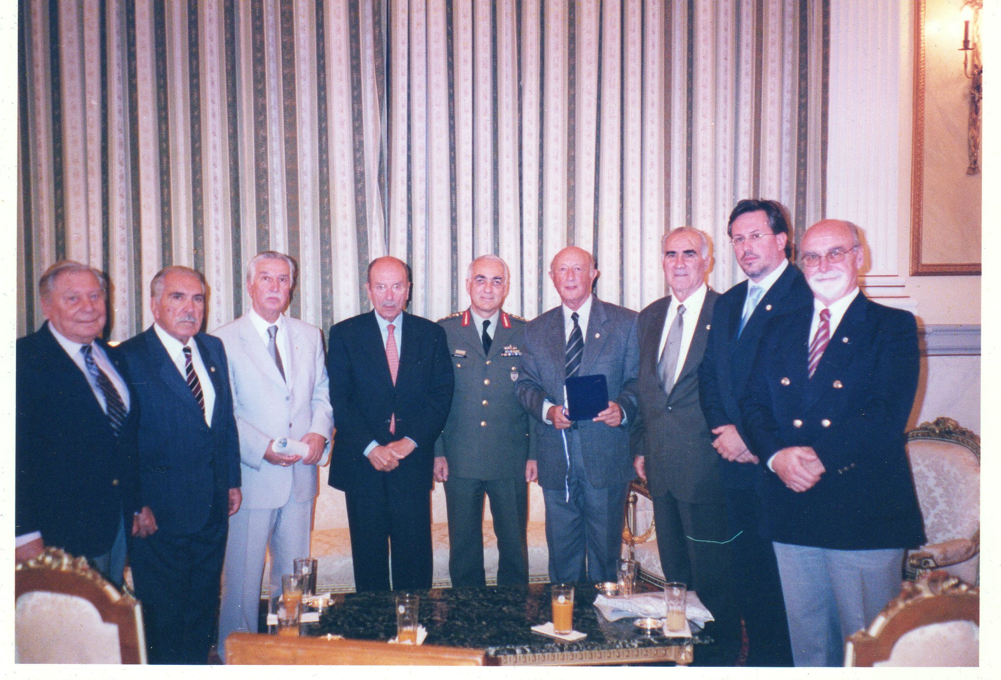 Ο Πρόεδρος της Δημοκρατίας κ.Κ. Στεφανόπουλος υποδέχεται στο Προεδρικό Μέγαρο τους Έφεδρους Αξιωματικούς. Διακρίνονται μεταξύ άλλων ο Πρόεδρος της ΑΠΟΕΑ Καθηγητής του Πανεπιστημίου Αθηνών κ. Γρ.Κωσταράς, ο Πρόεδρος του ΣΕΑΝ Αν.Αττικής κ. Θεόδωρος Μπριάνης, ο Γ.Γ. της ΑΠΟΕΑ κ. Ασλανίδης, ο Ειδ.Γ. κ. Χ. Καμίτσης, από τον ΣΕΑΝ Αθηνών ο κ. Αγραφιώτης, ο κ. Κιοσσές από τον ΣΕΑΝ Λάρισας.