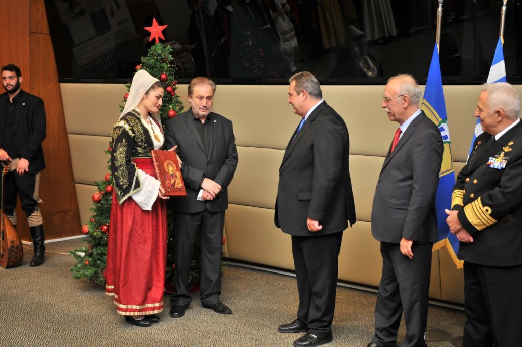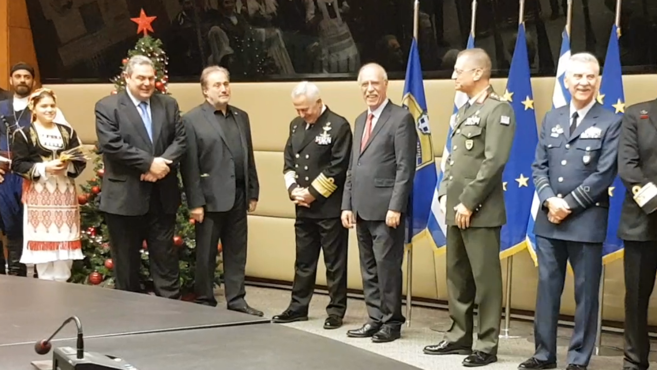 «Εκ μέρους της πολιτικής και στρατιωτικής ηγεσίας των Ενόπλων Δυνάμεων θέλω να ευχηθώ Χρόνια Πολλά, Καλά Χριστούγεννα, σε όλους τους αξιωματικούς, τους υπαξιωματικούς, τους στρατεύσιμους, τους εθνοφύλακες, τους έφεδρους, τους αποστράτους, τα στελέχη και τις οικογένειες των Ενόπλων Δυνάμεων.