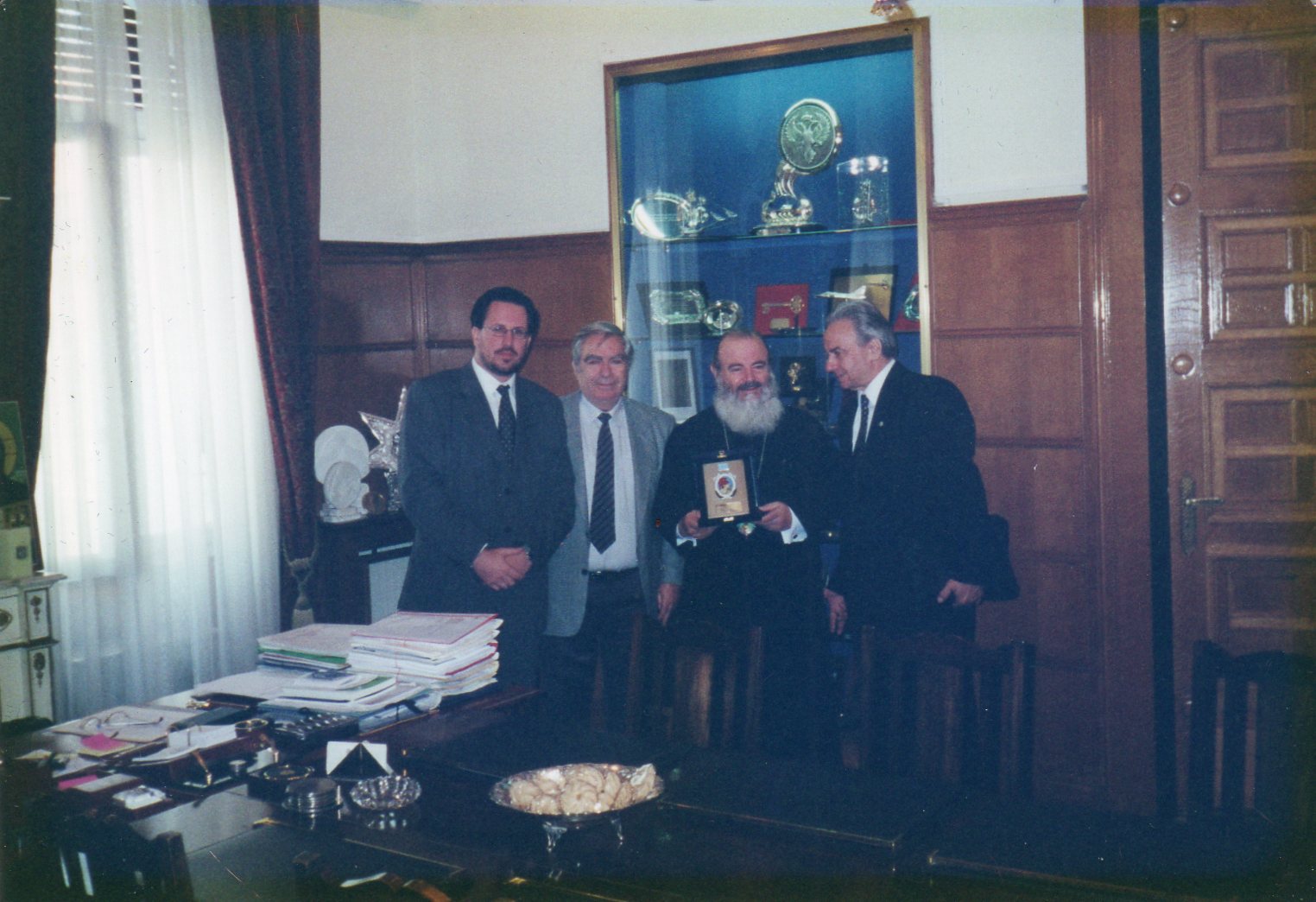 Θεόδωρος Μπριάνης, Νικόλαος Καψωμενάκης και Μελέτιος Μπασδέκης με τον Αρχιεπίσκοπο κ.κ. Χριστόδουλο στο γραφείο του στην Αρχιεπισκοπή Αθηνών.