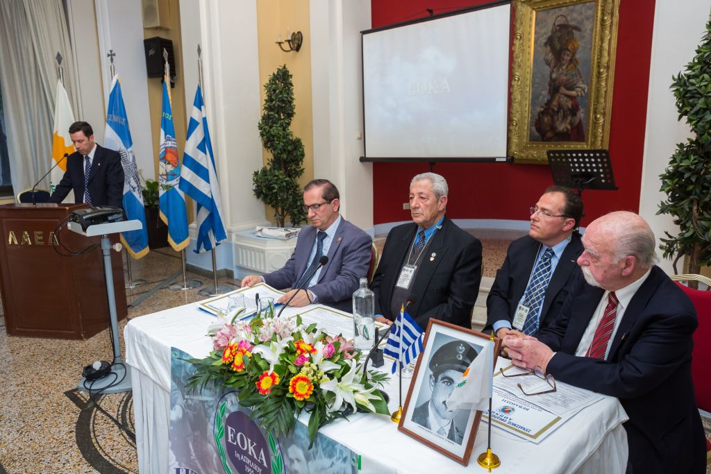 Παράλληλα με την Τελετή Αδελφοποίησης εορτάστηκε και η επέτειος των 60 χρόνων από την λήξη του Απελευθερωτικού Αγώνα της ΕΟΚΑ 1955-1959. Ακολούθησε ομιλία για το νόημα της επετείου της Κυπριακής Εξέγερσης της 1ης Απριλίου 1955 από τον Εφ. Υπολοχαγό (ΠΖ) εκπαιδευτικό και συγγραφέα κ. Μικελλίδη Δημήτριο και ομιλία από τον Δρ. Άγγελο Συρίγο, Αν. Καθηγητή του Παντείου Πανεπιστημίου Αθηνών με θέμα: “Κύπρος 1955: Ένας Αγώνας της Νεολαίας της Κύπρου για την Αυτοδιάθεση”.