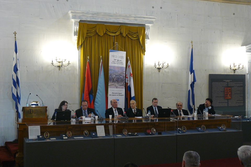 0Με μεγάλη επιτυχία πραγματοποιήθηκε το Σάββατο 15-2-2020 στο μέγαρο της Παλαιάς Βουλής, η εκδήλωση του Συνδέσμου Εφέδρων Αξιωματικών Αθηνών και των Αποστράτων Aξιωματικών Ιππικού – Τεθωρακισμένων για την Επέτειο των 107 ετών από την Απελευθέρωση της Πόλεως των Iωαννίνων με θέμα: «Άγνωστοι ήρωες στα χώματα της Ηπείρου». Ομιλητές ήταν οι : Ελευθέριος Διαμαντάρας, Καθηγητής – Μελετητής Ιστορίας, Τακτικό Μέλος της Ακαδημίας Νεαπόλεως, με θέμα «Η φιλοπατρία και ύψιστη προσφορά του Νικολάου Μιζαντζόγλου (Νικολάκη Εφέντη), στην πτώση του Μπιζανίου για την απελευθέρωση των Ιωαννίνων και η εγκληματική επιπολαιότητα των Ελλήνων δημοσιογράφων»,Κουρκουμέλης Νικόλαος, Υπτ/γος ε.α., καθηγητής ΣΣΕ, με θέμα «Λόχος Λιατζίδη – Λόχος Θανάτου 1940» και Σάββας Καλεντερίδης, Σ/χης ε.α., συγγραφέας, με θέμα «Γρηγόριος Σταύρου, το άγνωστο βοσκόπουλο από τη Γριάζιανη». Συγχαρητήρια πολλά στον Πρόεδρο του Συνδέσμου Αθ.Σταματελόπουλο και το ΔΣ. Παρέστησαν εκ μέρους της ΑΠΟΕΑ ο Πρόεδρος Δρ Φ.Κωσταράς, ο Αντιπρόεδρος Μ.Φιλιππίδης, ο ΓΓ Θρ.Λαδόπουλος, ο Ταμίας Σ.Ασλανίδης, καθώς και ο επίτιμος Πρόεδρος Καθηγητής Γρ.Κωσταράς. Τον ΣΕΑΝ ΑΝ ΑΤΤΙΚΗΣ εκπροσώπησαν εκτός του Μ.Φιλιππίδη, ο Πρόεδρος Θ. Μπριάνης , ο ΓΓ Γεώργιος Μιχαήλ και αρκετά μέλη.