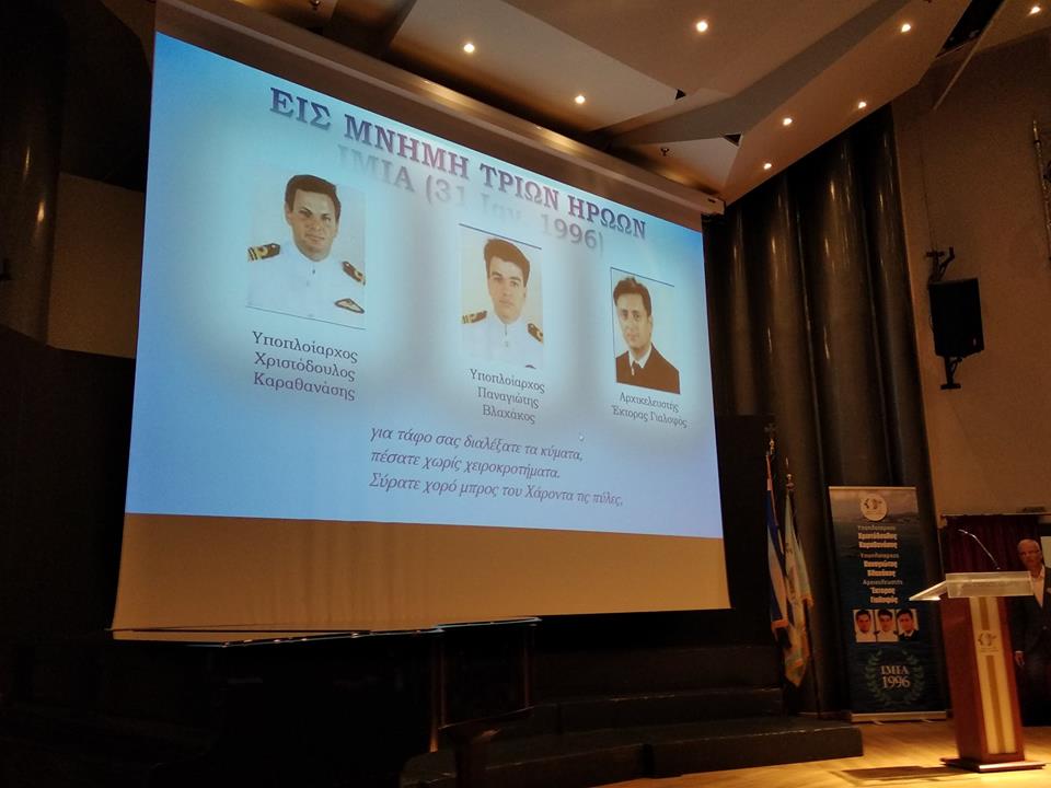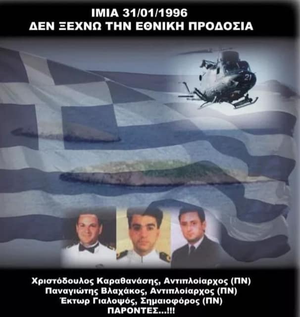 31 Ιανουαρίου 1996: Ο Υποπλοίαρχος Χριστόδουλος Καραθανάσης, ο Υποπλοίαρχος Παναγιώτης Παναγιώτης Βλαχάκος και ο Αρχικελευστής Έκτορας Γιαλοψός, έκαναν πράξη τον όρκο στην Πατρίδα …μέχρι της τελευταίας ρανίδος του αίματός τους.