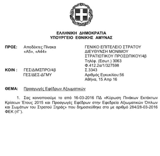 ΠΡΟΑΓΩΓΕΣ ΕΦΕΔΡΩΝ ΑΞΙΩΜΑΤΙΚΩΝ ΓΙΑ ΤΟ 2016