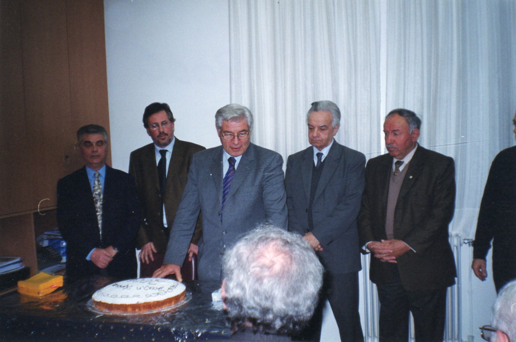 Ο Πρόεδρος και τα μέλη του Δ.Σ.κατά την κοπή της πίτας του Συνδέσμου στο Β΄Γυμνάσιο Αγ.Παρασκευής.
