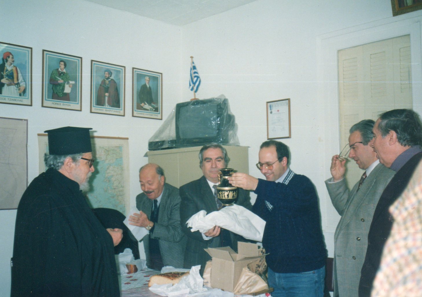Το μέλος του ΣΕΑΝ Απόστολος Αναστασιάδης παραλαμβάνει το δώρο του. Διακρίνονται ο Πρόεδρος Μ.Μπασδέκης, Ν. Καψωμενάκης, Π.Βαβουγιός και Μ.Παπαϊωάννου